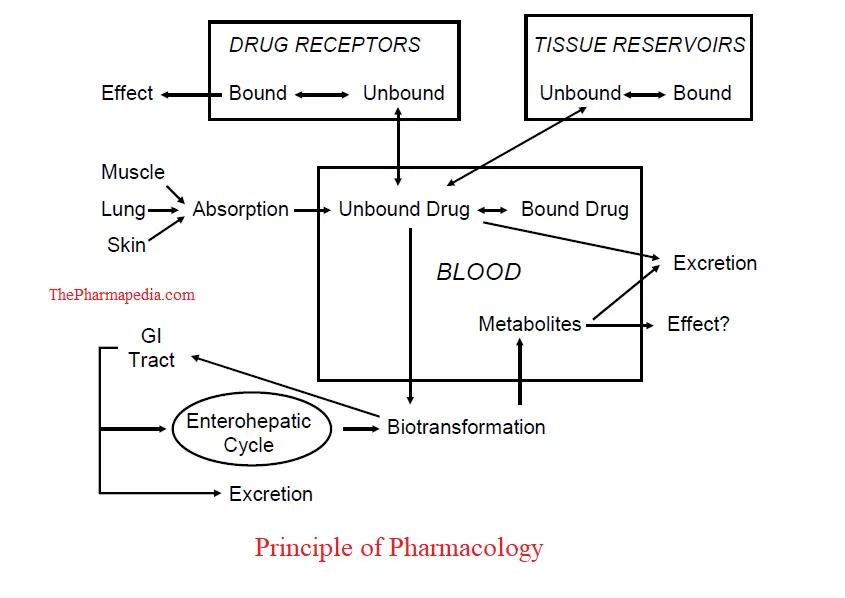 Pharmacokinetics (what body does with the drug) deals with the absorption, distribution, and excretion of drugs.